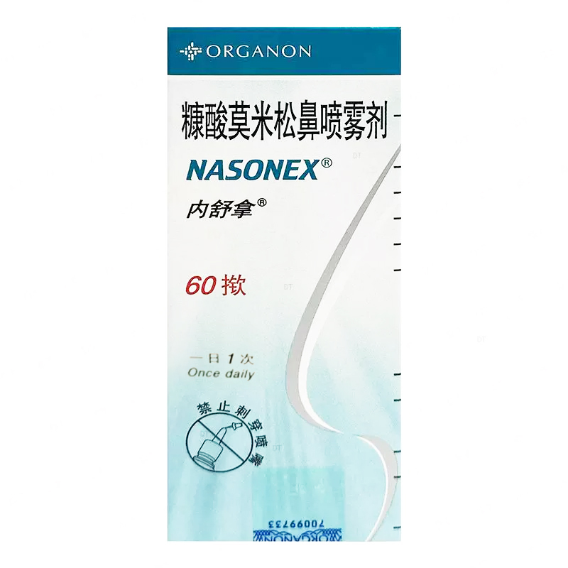 【用法用量】 季节过敏性或常年性鼻炎: 通常先手揿喷雾器6-7次作为启动,直至看到均匀的喷雾,然后鼻腔给药,每喷喷出糠酸莫米松混悬液100mg,内含糠酸莫米松一水合物,相当于糠酸莫米松50μg,如果喷雾器停用14 日以上,则在以后应用时应重新启动。 在每次用药前充分振摇容器。 1.成人(包括老年患者)和青年:用于预防和治疗的常用推荐量为每侧鼻孔2 喷(每喷为50μg)一日1 次(总量为200μg),症状被控制后,剂量可减至每侧鼻孔1喷(总量100μg),即能维持疗效。 如果症状未被有效控制,可增剂量至每侧鼻孔4 喷(总量400μg),在症状控制后减小剂量。在首次给药后12 小时即能产生明显的临床效果。 2.3 至11 岁儿童:常用推荐量为每侧鼻孔1 喷(每喷为50μg),一日1 次(总量为100μg)。